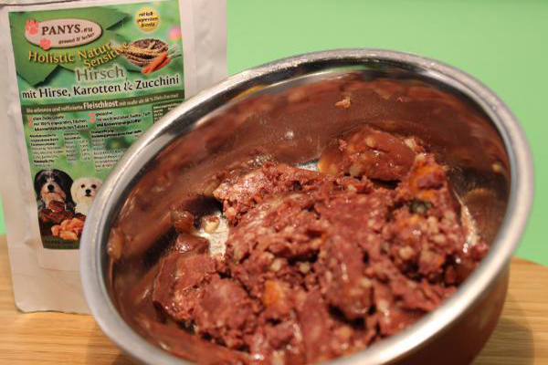 Das Highlight für viele Hunde mit ernährungsbedingten Problemen, wie weißes Fleisch oder Gluten, mit nur 1 Protein in Form v. 63,0 % Hirsch  und Fleischbrühe 27,0 % vom Hirsch. Dazu kommt 4,0 % Hirse, also eine glutenfrei Rezeptur. Die 2,0 % Zucchini dienen in der tierischen Ernährung als ideale Vitamin-Lieferanten und sind leicht verdaulich. 4,0 % Karotten, enthalten Vitamin A sowie Beta-Carotin und sind für die Augengesundheit wichtig ( :-) oder haben Sie schon einmal einen Hasen mit Brille gesehen?). Wie immer dürfen auch hier die Mineralstoffe und ÖL (hier Distelöl) nicht fehlen.